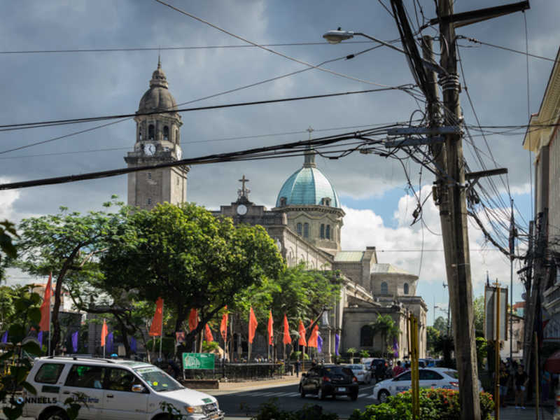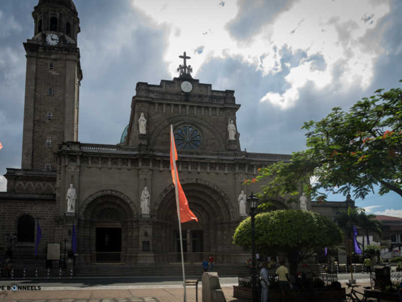 Dans l’intramuros retrouver beaucoup de chose, dont la cathédrale de Manille qui a une histoire assez singulière. La cathédrale que vous pouvez apercevoir à ce jour est la huitième reconstruction. En effet sa première construction remonte à 1571, elle était faite en bambou et en nipa, mais elle a brulé… Après ce drame elle fut reconstruite en pierre, mais au fils des années, elle a été détruite à cause, soit des tremblements de terre, soit des typhons, soit des batailles. À chaque fois, elle a été reconstruite et aujourd’hui on peut voir le huitième édifice. Reconstruite de 1953 à 1958, elle a été élevée au rang de cathédrale et basilique mineur par le Pape Jean-Paul II en 1981 et nommé Basilique de l’immaculée conception !