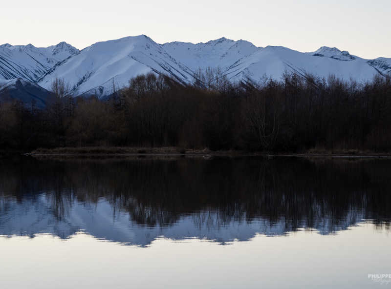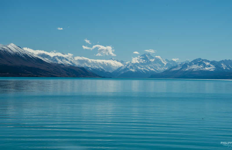 Sur la route, nous passions de baie en baie, de beau paysage en beau paysage et on a failli passer à coté de la montagne la plus haute de Nouvelle Zélande, le Mont Cook et en maoris Aoraki !! Mais heureusement, on a l’œil vif !!