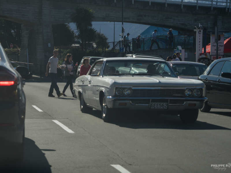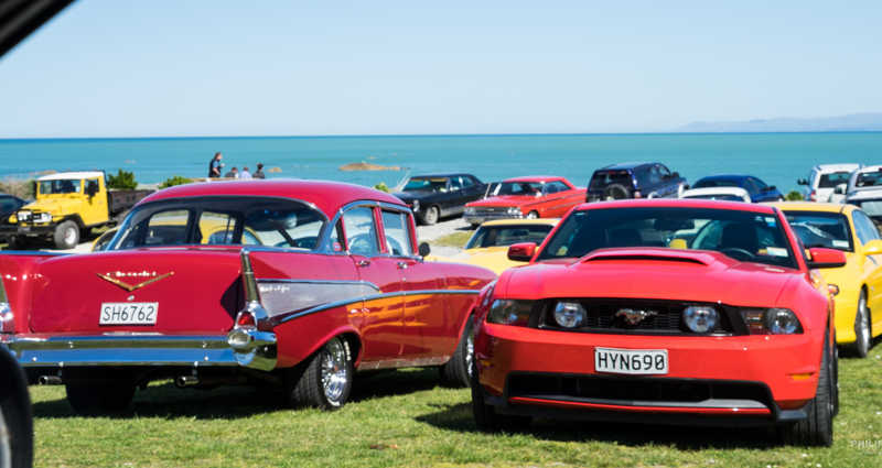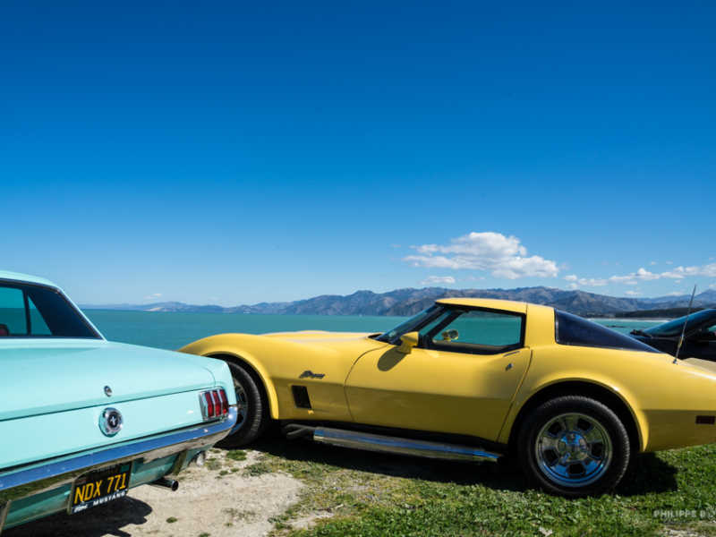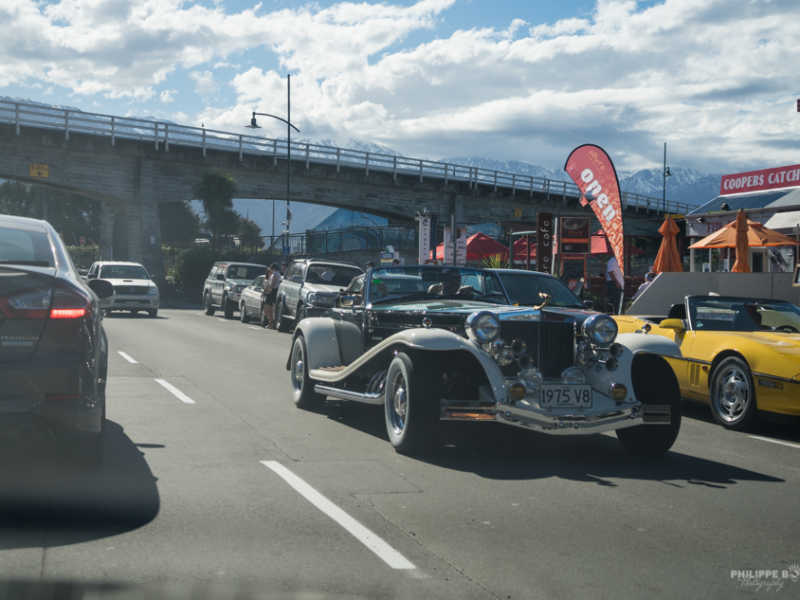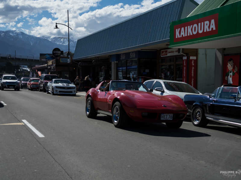 À Kaikoura, c’est une belle surprise qui se présente à nous. Un rassemblement de voiture mais pas n’importe lesquels : Corvette, vieux Ford, Mustang ; toute une ribambelle de voiture ancienne très bien entretenues.