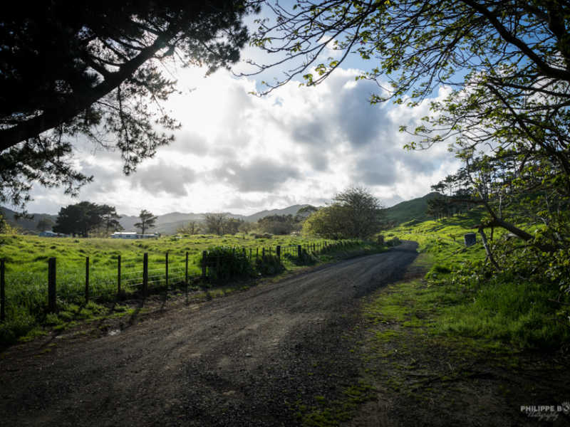 Nous traversons Auckland sans nous arrêter ; nous y reviendrons plus tard, mais a un peu plus d’une heure de là, nous trouvons un parking où l’on est autorisé à dormir. Un parking, n’imaginer pas le parking souterrain de la grande surface du coin, non : vue sur mer au bout d’une petite route ; les photos parleront d’elle-même. Nous y resterons qu’une seule nuit mais nous allons vivre une rencontre et un repas unique !