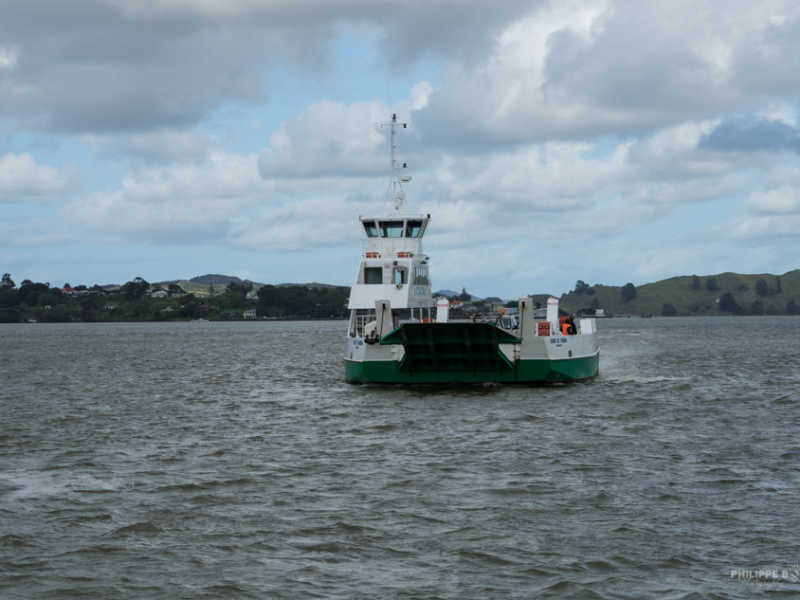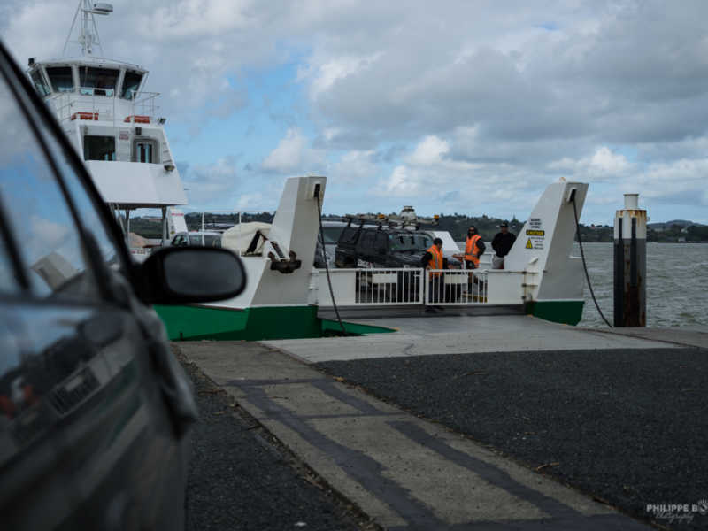 Nous redescendons sur Auckland en passant par Kohukohu où nous traversons la rivière grâce à un ferry pour arriver à Rawene. Ce n’est pas notre premier ferry avec la voiture mais le moment est toujours sympathique ! Et puis c’est l’occasion de faire la photo de promotion pour vendre la voiture