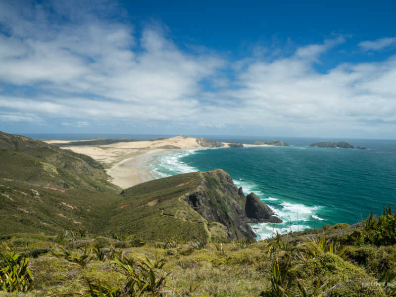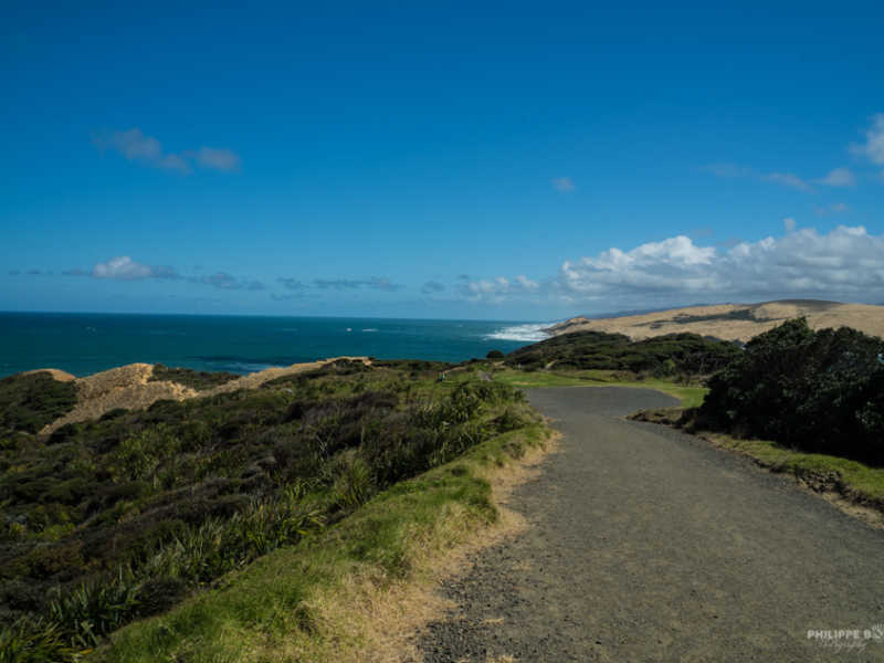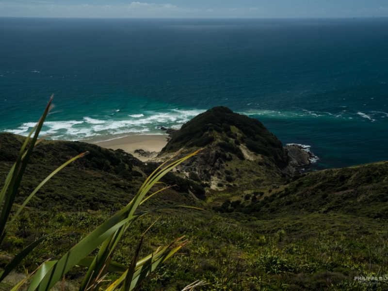 La pointe à une certaine signification pour les maoris, sur la plage en contrebas il y a un arbre vieux d’au moins 800 ans, qui aiderait les esprits à aller vers Hawaiki (l’ile de leurs origines). Cette plage est un sanctuaire à ne pas foulé… Il est aussi non autorisé de manger sur ces lieux sacrés ! Nous n’en connaissons pas la raison, mais nous nous y plions sans broncher, du coup le piquenique ça sera plus au sud. L’occasion de ressortir l’appareil photo.