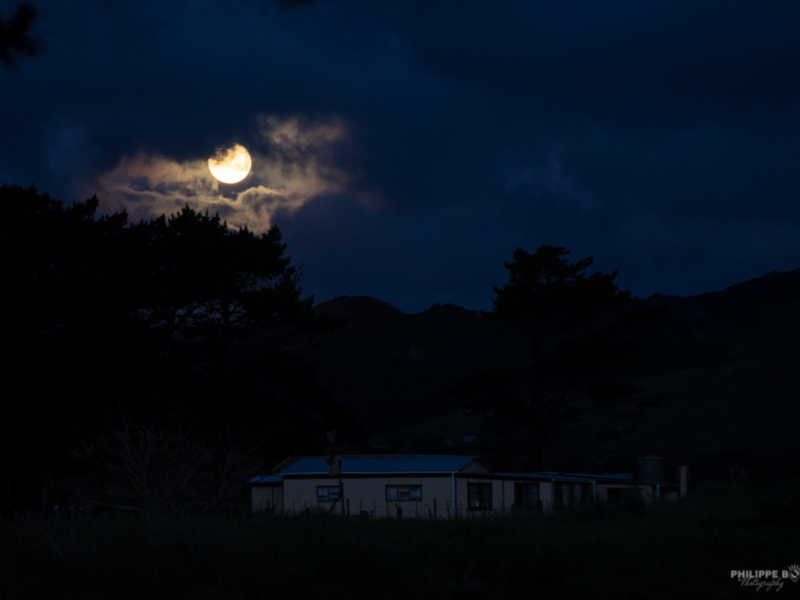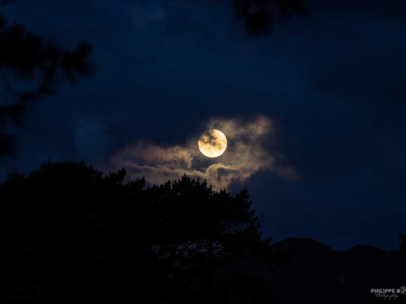 Après ce beau coucher de soleil, c’est la lune qui nous éclairera de sa couleur étrange.