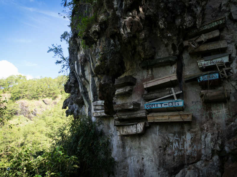 Ensuite direction le cimetière ! Hein, le cimetière ? Oui, oui ! comme je vous le disais dans l’intro, il y a une particularité non singulière ici, des cercueils suspendus. C’est impressionnant et vraiment pas si vieux. Le dernier mis en place date de 2010. Tout d’abord côté pratique. Vu comment le cimetière est maintenant célèbre, des guides ont été mis en place pour respecter ce lieu de recueillement pour les familles. Cela ne coute vraiment pas chère et encore moins si vous vous mettez en groupe. Le guide vous permet de bien comprendre l’histoire attenant à ce cimetière et qui de surplus est vraiment sympathique.