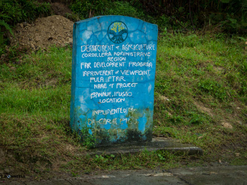 Nous traversons les rizières par un chemin que nous n’avions pas encore emprunté. Ce qui nous donne une vue différente et surtout plus en hauteur ! Une fois arrivés au sommet de l’amphithéâtre, avec une vue imprenable sur le village de Batad, notre route prend le chemin de Cambulo. Le panneau indique 3 km ; pas bien loin avant la première pose !!